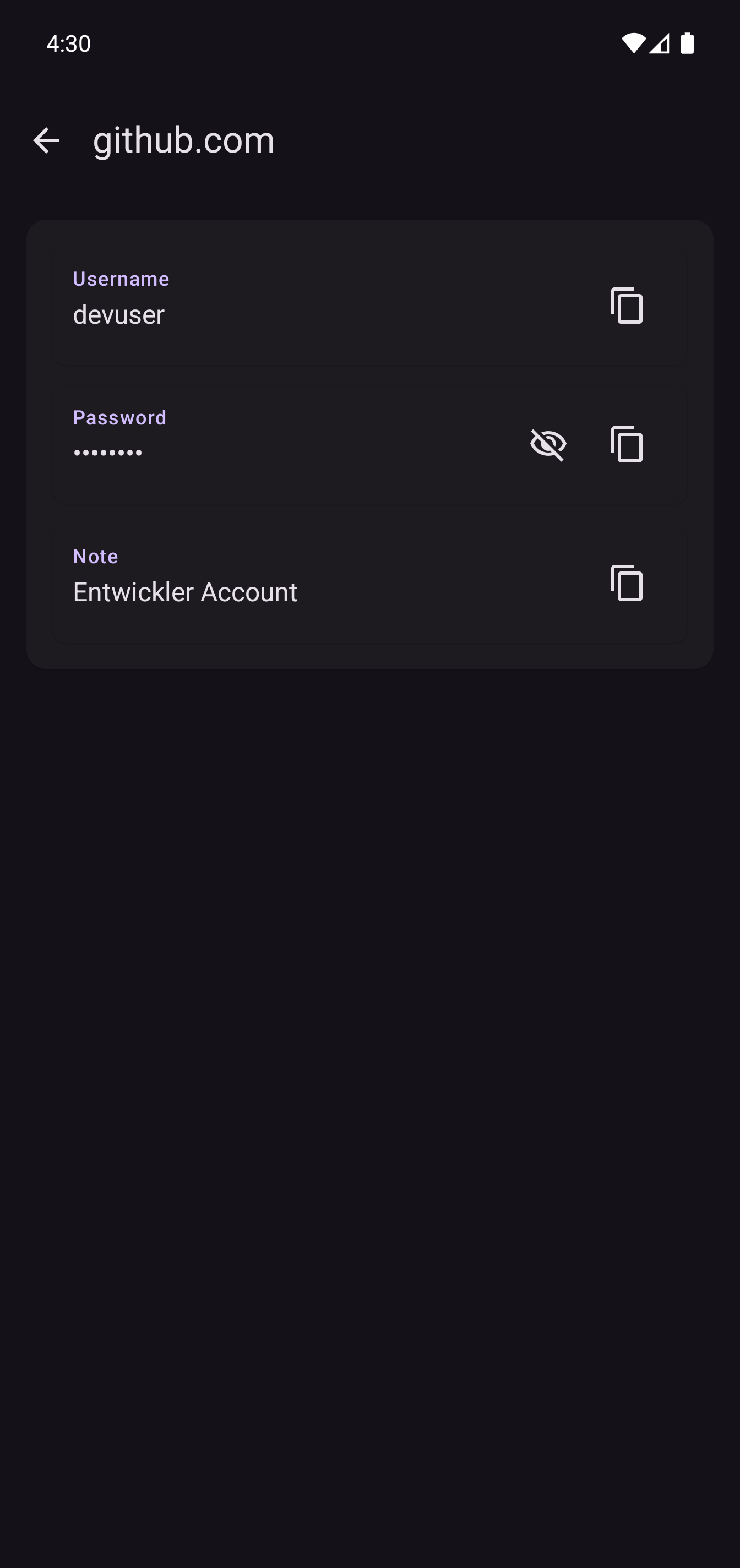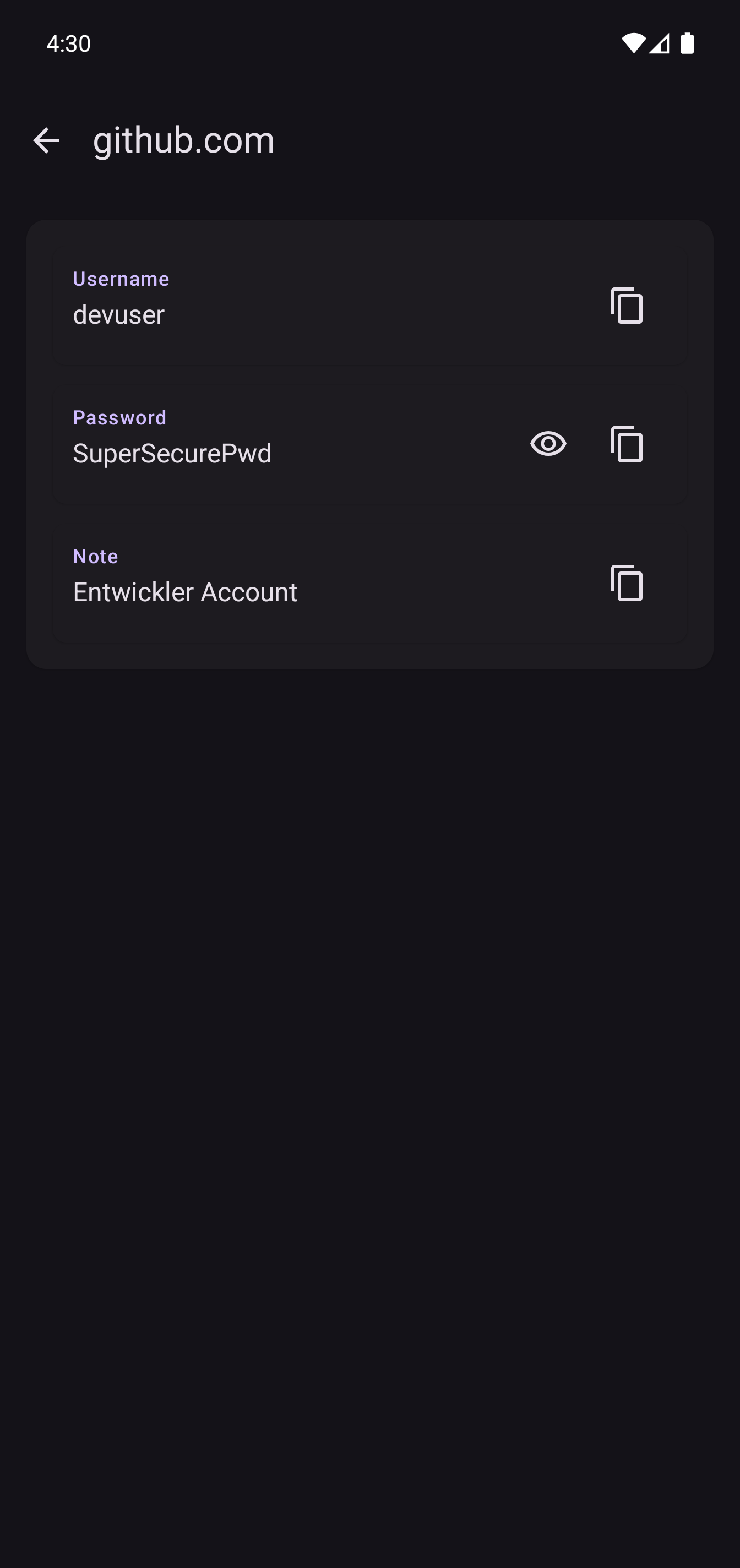 A Materiel 3 Password Manager. Import your CSV Passwords and your passwords are getting imported. You can copy usernames and passwords. You can access the app via biometric authentication or by entering your master password.